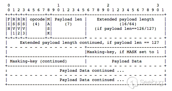 x8 f& K! y. @# e. x: w" M5 Z- XSec-WebSocket-Version表示 WebSocket 的版本,如果服务端不支持该版本,需要返回一个Sec-WebSocket-Versionheader,里面包含服务端支持的版本号。 服务端的响应报文: HTTP/1.1 101 Switching ProtocolsUpgrade: websocketConnection: UpgradeSec-WebSocket-Accept: HSmrc0sMlYUkAGmm5OPpG2HaGWk=Sec-WebSocket-Protocol: chatUpgrade消息头通知客户端确认切换协议来完成这个请求; Sec-WebSocket-Accept是经过服务器确认,并且加密过后的Sec-WebSocket-Key; Sec-WebSocket-Protocol则是表示最终使用的协议。 注意:Sec-WebSocket-Key/Sec-WebSocket-Accept的换算,其实并没有实际性的安全保障。 进行通信服务端接收到客户端发来的Websocket报文需要进行解析。 数据包格式 Mask位表示是否要对数据载荷进行掩码异或操作。 Payload length表示数据载荷的长度。 Masking-key数据掩码,为防止早期版本的协议中存在的代理缓存污染攻击等问题而存在。 Payload Data为载荷数据。 服务端返回数据时不携带掩码,所以 Mask 位为 0,再按载荷数据的大小写入长度,最后写入载荷数据。 心跳WebSocket为了保持客户端、服务端的实时双向通信,需要确保客户端、服务端之间的TCP通道没有断开。对于长时间没有数据往来的通道,但仍需要保持连接,可采用心跳来实现。 发送方->接收方:ping 接收方->发送方:pong ping、pong的操作,对应的是WebSocket的两个控制帧,opcode分别是0x9、0xA。 关闭连接关闭连接标志着服务器和客户端之间的通信结束,标记通信结束后,服务器和客户端之间无法进一步传输消息。 Web Terminal实现通常所说的Terminal是指的终端模拟器,一般情况下终端模拟器是不会直接与shell通讯的,而是通过pty(Pseudoterminal,伪终端)来实现,pty 是一对 master-slave 设备。 终端模拟器通过文件读写流与 pyt master通讯,pty master再将字符输入传送给pty slave,pty slave进一步传递给bash执行。 Web Terminal则是实现在浏览器展示的终端模拟器,前后端建立WebSocket连接,保证浏览器和后端实时通信。 实现思路: 1.浏览器将主机信息传给后台, 并通过HTTP请求与后台协商升级协议,协议升级完成后, 得到一个和浏览器的web Socket连接通道