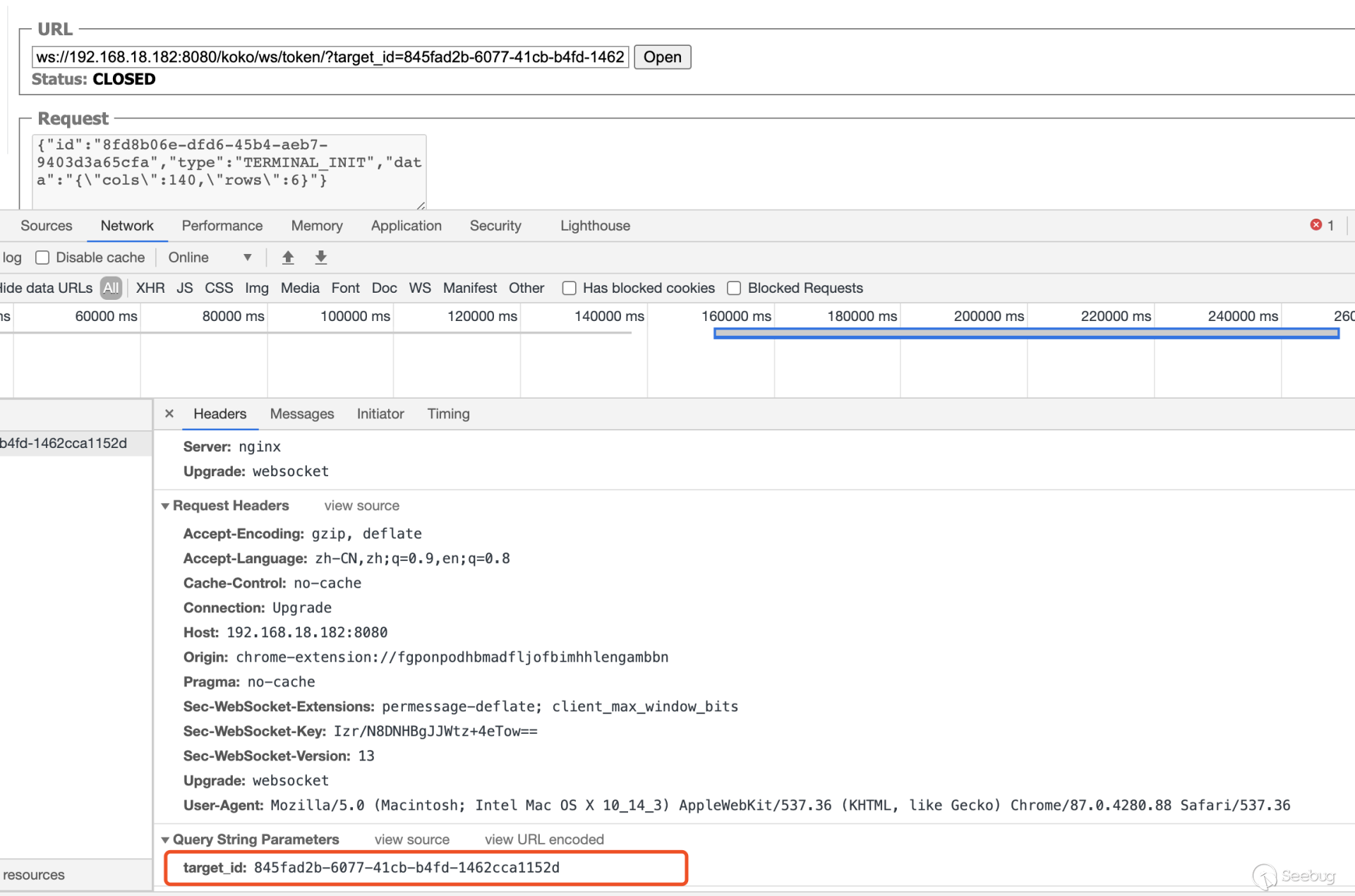, G! e4 f$ k$ [! _7 PSec-WebSocket-Key是由浏览器随机生成的,提供基本的防护,防止恶意或者无意的连接。